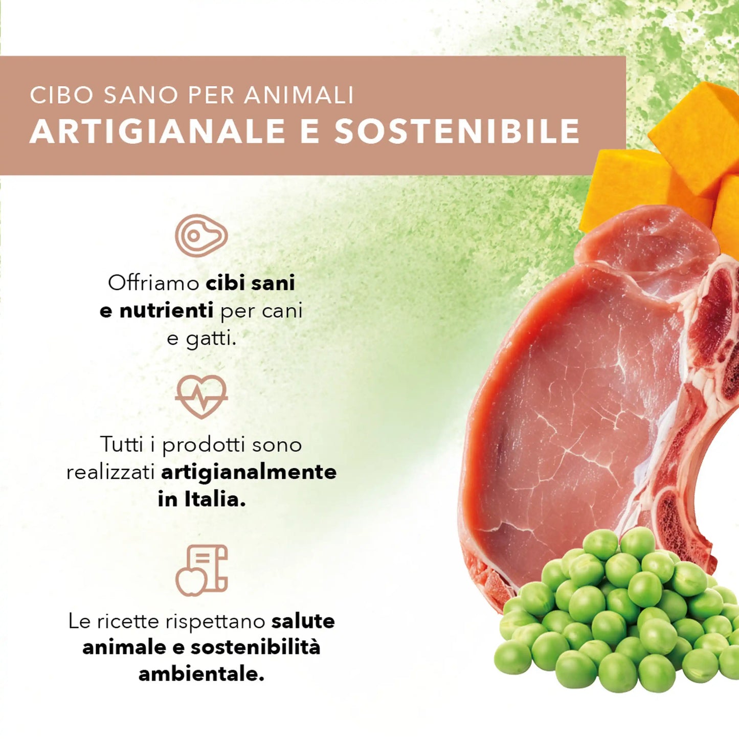 Composizione: Maiale 53,3%, manzo 26,7%, zucca*, piselli*.