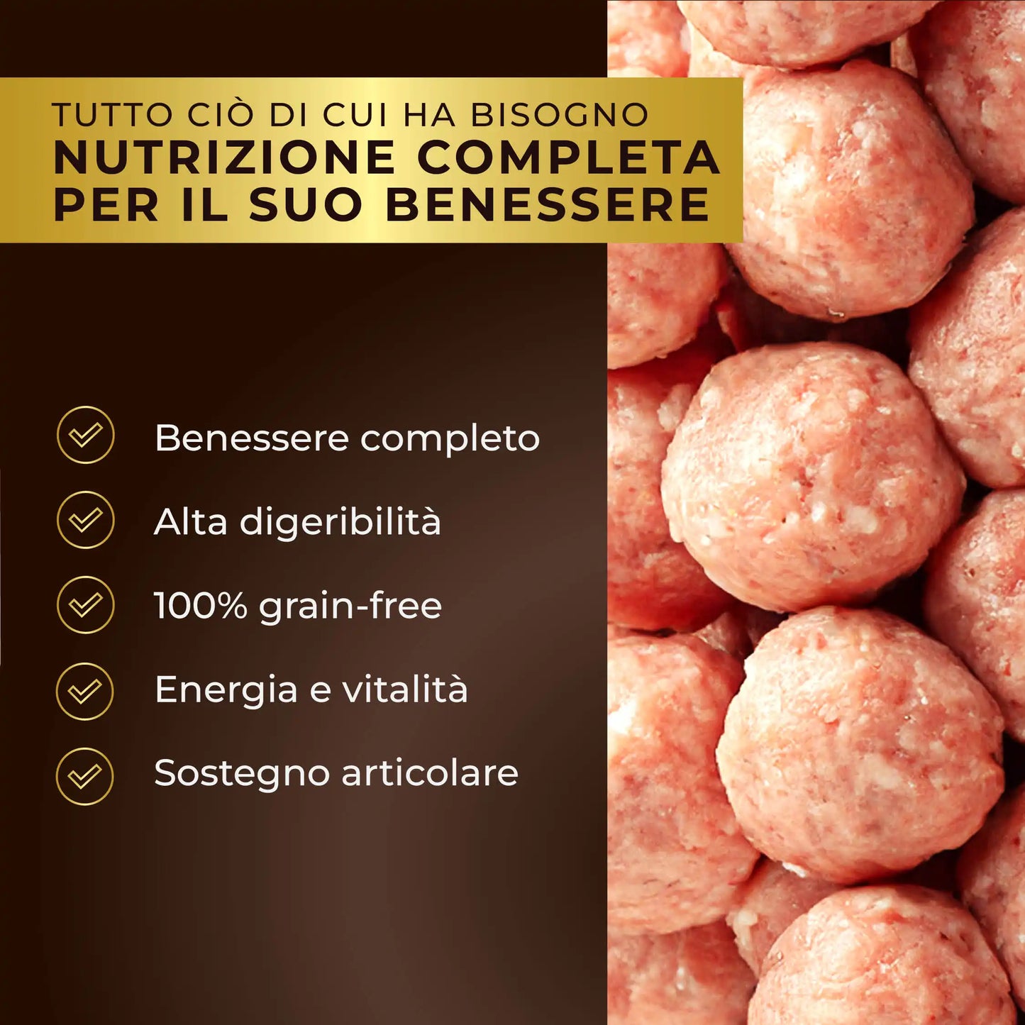 Scopri le nostre polpette 100% naturali, preparate in Italia con ingredienti selezionati. Il tuo cane le adorerà!