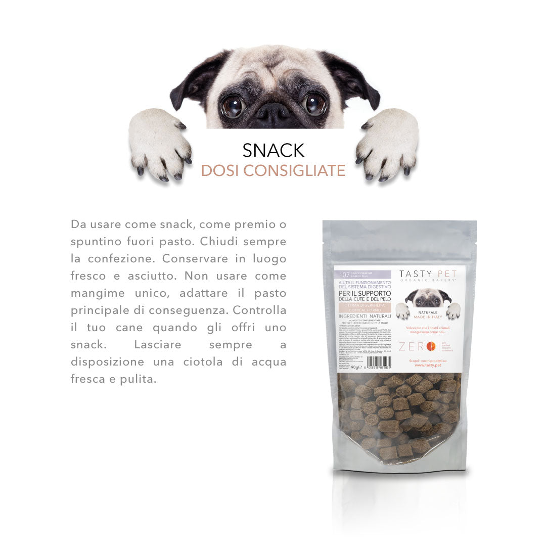 It is made from natural ingredients rich in high-quality proteins, which are essential for the proper functioning of the body. It contains vitamins A, C, E, and K, which strengthen the immune system and improve skin hydration. It is rich in vegetable fibers that improve the functioning of the digestive system. The presence of Omega 3 and Omega 6 guarantees antioxidant function and contributes to strengthening the cardiovascular system. Potassium, phosphorus, sodium, calcium, magnesium, iron, zinc, and selenium strengthen the health of bones, teeth, and eyes.The organic seaweed Ascophyllum nodosum, with a high content of amino acids and iodine, helps keep the coat shiny and acts against tartar and plaque.