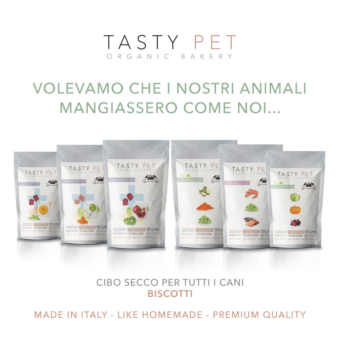 "Ho due cani anziani e con il cibo industriale avevano sempre qualche problemino. Da quando uso Tasty Pet sono rinati, più vivaci e con meno disturbi digestivi. Contenta di aver trovato un'azienda italiana che fa le cose per bene."