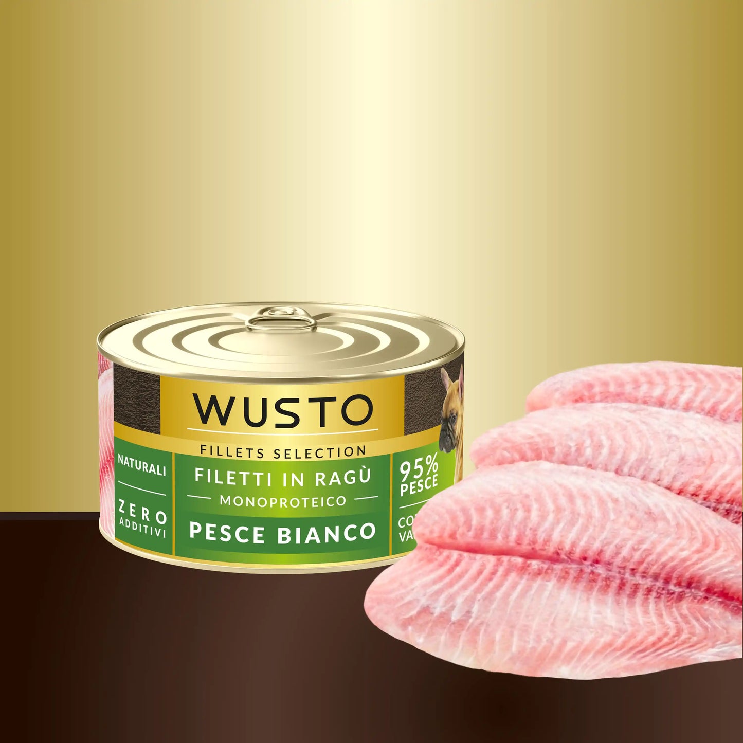 WUSTO Fillets in Ragù WHITE FISH 95% Fish - Complete Wet Food for Dogs