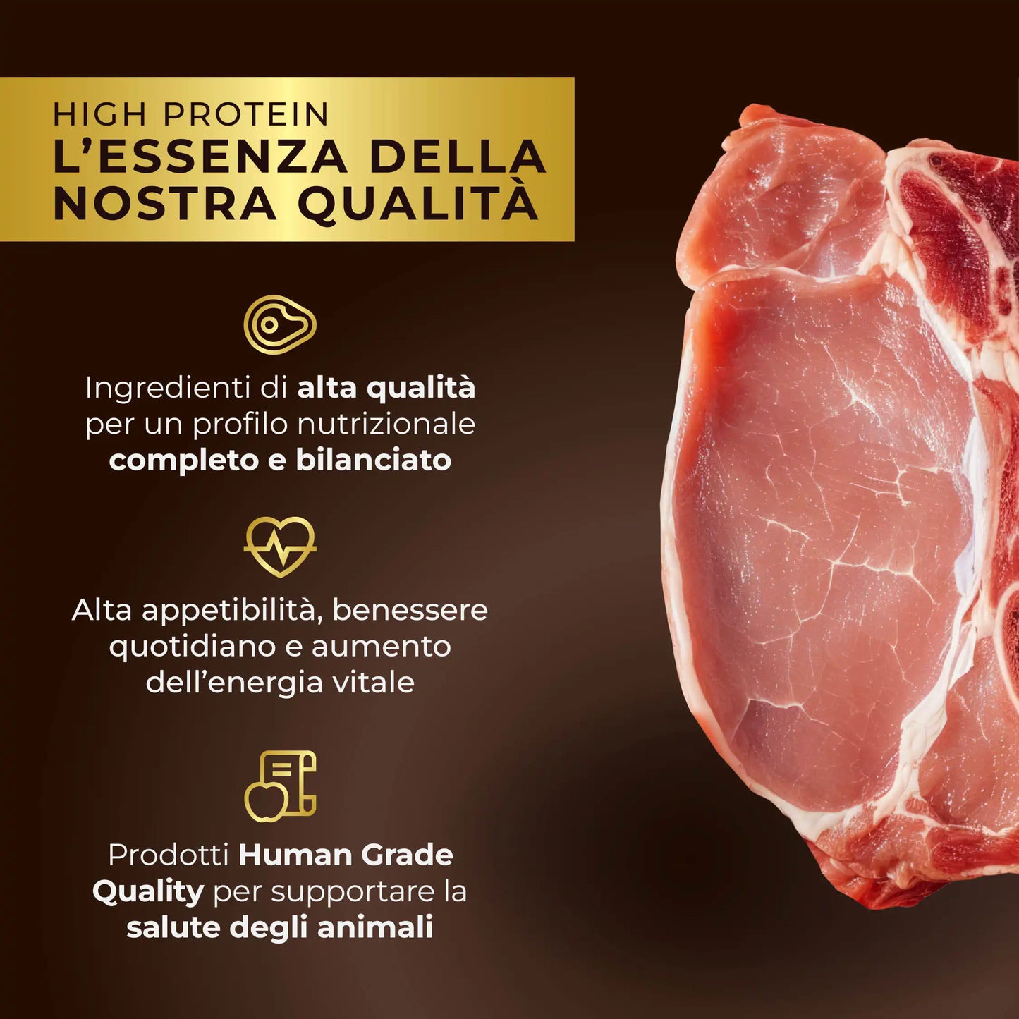 Made with pork, a source of high biological value protein and minerals such as phosphorus and potassium that promote muscle maintenance and development, contributing to strength, endurance, and daily vitality. Its tasty meat is ideal for stimulating the appetite even in the most demanding dogs.
