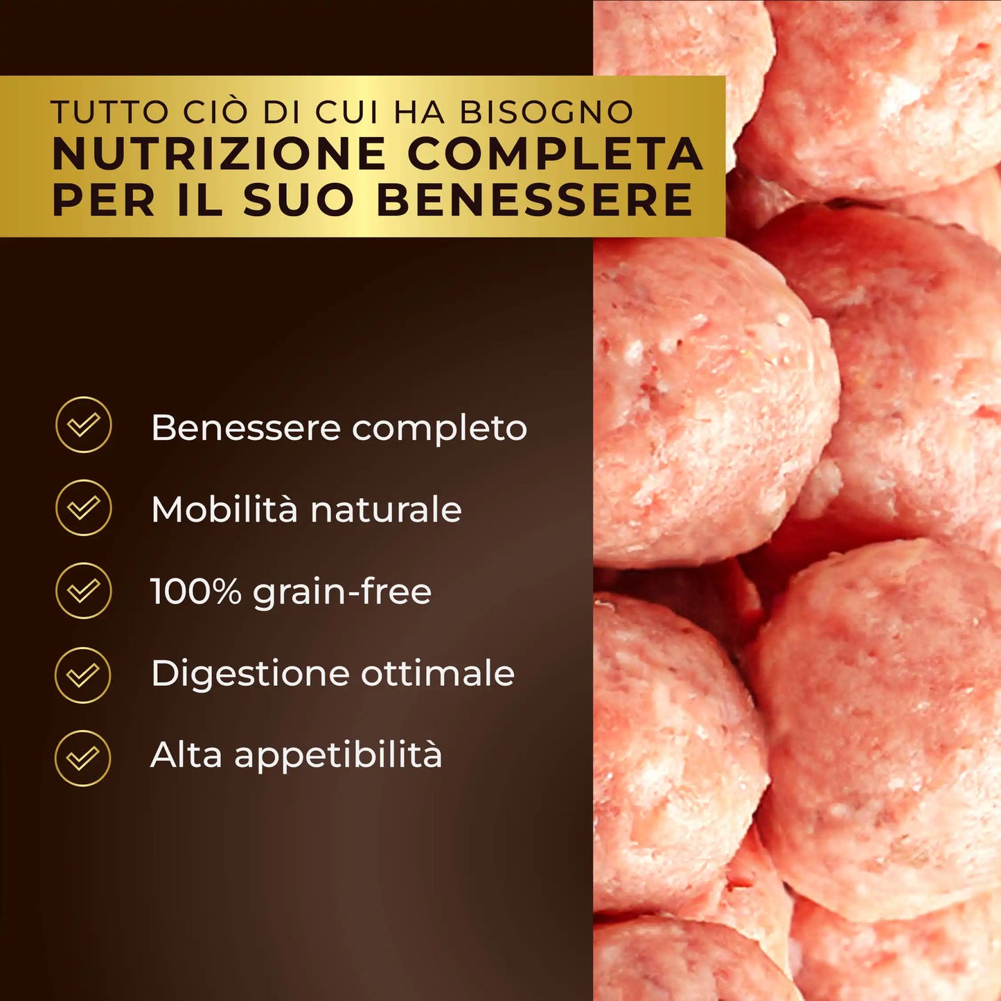 Scopri le nostre polpette 100% naturali, preparate in Italia con ingredienti selezionati. Il tuo cane le adorerà!